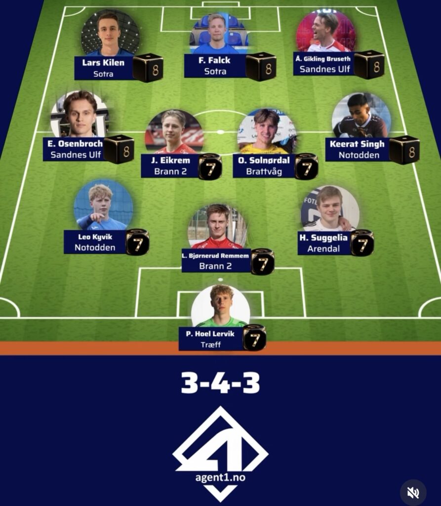 RUNDENS LAG (21) POSTNORD AVDELING 1 3-4-3 Peder Hoel Lervik, Træff 7 Tre klasseredninger som holder Træff inne i kampen. Det blir tellende da laget kjemper seg til et meget viktig poeng i bunnstriden. 24-åringen med U21-landskamper blir en nøkkelspiller der. Håkon Suggelia, Arendal 7 Sol, regn, hagl eller vind, Håkon Suggelia går i krigen uansett. Noen særdeles viktige taklinger mot Træff. Lars Bjørnerud Remmem, Brann 2 7 God med ball i beina. Fine oppspill. Styrer forsvaret med stødig hånd for Brann 2 som holder nullen mot Sandviken. Leo Kyvik, Notodden 7 God i begge bokser og skaper flere sjanser fra stopperplass. En solid kamp fra 21-åringen for Notodden som holder Jerv til 2-2 i Grimstad. Keerat Singh, Notodden 8 Banens beste. Mange fine løp alene med ballen, og scorer et vakkert 1-1-mål. Veldig nære på å få med seg flere scoringer. Oscar Solnørdal, Brattvåg 7 Dirigenten bak mye av tiki-taka-spillet til Brattvåg. Flink til å sette opp trekanter som blir farlige til tross for at motstander ligger lavt i en 5-4-1. God teknikk og høy intensitet. Scorer sikkert på straffe til 1-0. Banens beste. Jesper Eikrem, Brann 2 Flink å skape overtall på venstresiden til Brann 2. På riktig sted til riktig tid og scorer 1-0. Gjør jobben defensivt og flink til å ville ha ball når laget var under press. Endre Hjertager Osenbroch, Sandnes Ulf 8 En spiller i en særegen klasse som det oser selvtillit av. Man sitter med en følelse av at det kan skje noe farlig hver eneste gang han berører ballen. Banens beste. Ådne Gikling Bruseth, Sandnes Ulf 8 Kom seg i flere gode scoringsposisjoner. Scoret også et lekkert mål på volley. En meget aktiv kamp for 26-åringen fra Kristiansund. Frederic Falck, Sotra 8 Jobber knallhardt og er god i presspillet. Sterk og god feilvendt. Er stadig en trussel med bevegelser i riktige rom og slipper ballen i rett øyeblikk. Lars Kilen, Sotra 8 Satte tre mål av den lekne sorten, alle i løpet av 20 minutter i 1. omgang. Det første på et innøvd frispark, det andre etter et veggspill/dribling og det tredje på et pent skudd etter å ha gått av to mann.. . . . . . . . #postnord #signaturemoves #scouting #football #strømmen
