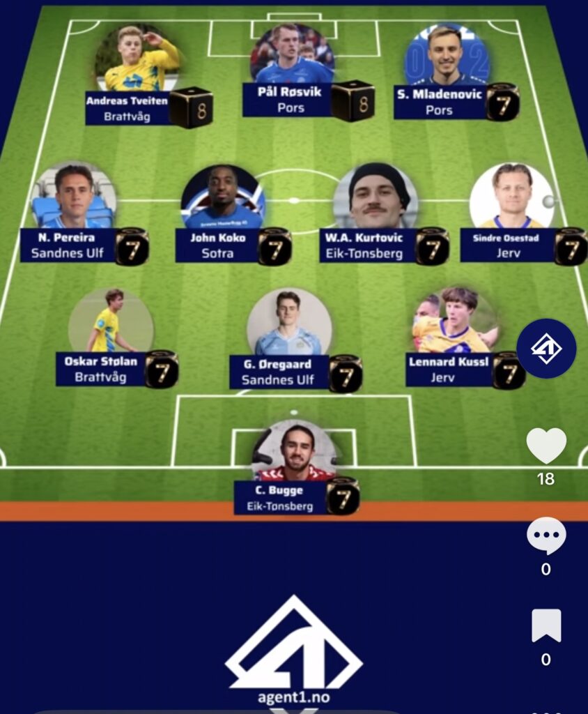 Meget god, og skaffer straffe til 1-0. Scorer også 2-0 selv, og blir med det helt avgjørende for at playoff-plassen i Avdeling 1 nå er pip åpen. Sotra er favoritter foran Brattvåg og Jerv.