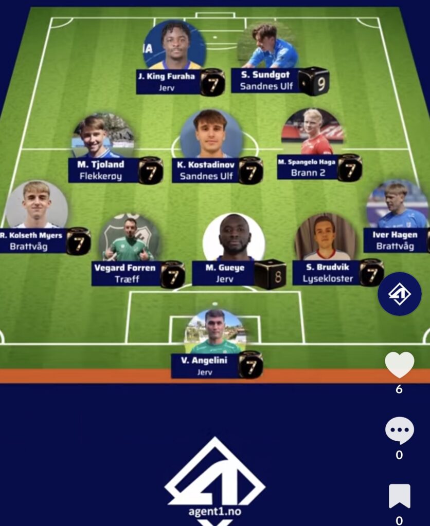 Vi våger å påstå at dette er spilleren med høyest akselerasjon i PostNord. Meep-meep langs venstrekanten og en konstant trussel i hele den timen han får på banen. Toppscorer for Jerv med 9 mål.